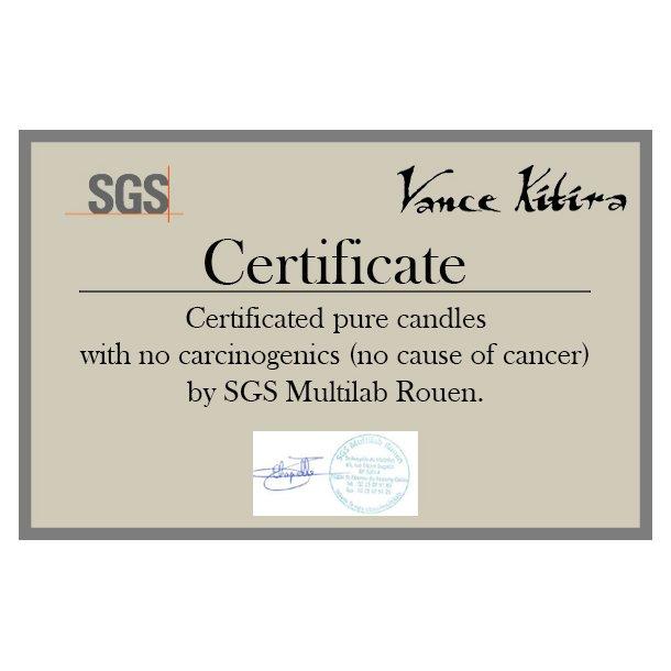 Det, vi med en fællesbetegnelse kalder stearinlys, dækker over lys fremstillet af paraffin, stearin, soyavoks, bivoks, palmevoks m.m. Paraffin findes i et utal af forskellige kvaliteter. Afbrænding af paraffin i dårlig, uren kvalitet kan være skadeligt for både indeklimaet og helbredet – det udløser nemlig partikler og kvælstofdioxid i luften. Niveauet kan overstige, hvad der for eksempel udledes på en stærkt trafikeret vej. Heldigvis kan man sagtens finde gode og allergitestede alternativer som Vance Kitiras smukke Timber Candles. Alle lys fra Vance Kitira bliver testet og certificeret på SGS Laboratory i Frankrig.