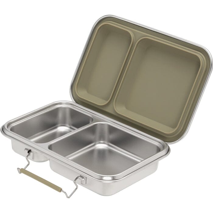 Haps Box kommer med et aftageligt silikoneindlæg i låget, som holder indholdet i de to rum adskilt.