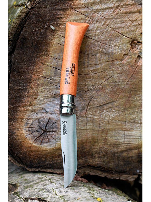 Den originale foldekniv blev lavet i carbon stål, som er let at slibe skarpt på en Opinel slibesten, men carbonbladet skal holdes rent og fugtfri, fordi det ellers kan ruste. I dag vælger de fleste kniven i rustfri stål, fordi den stort set er vedligeholdelsesfri.