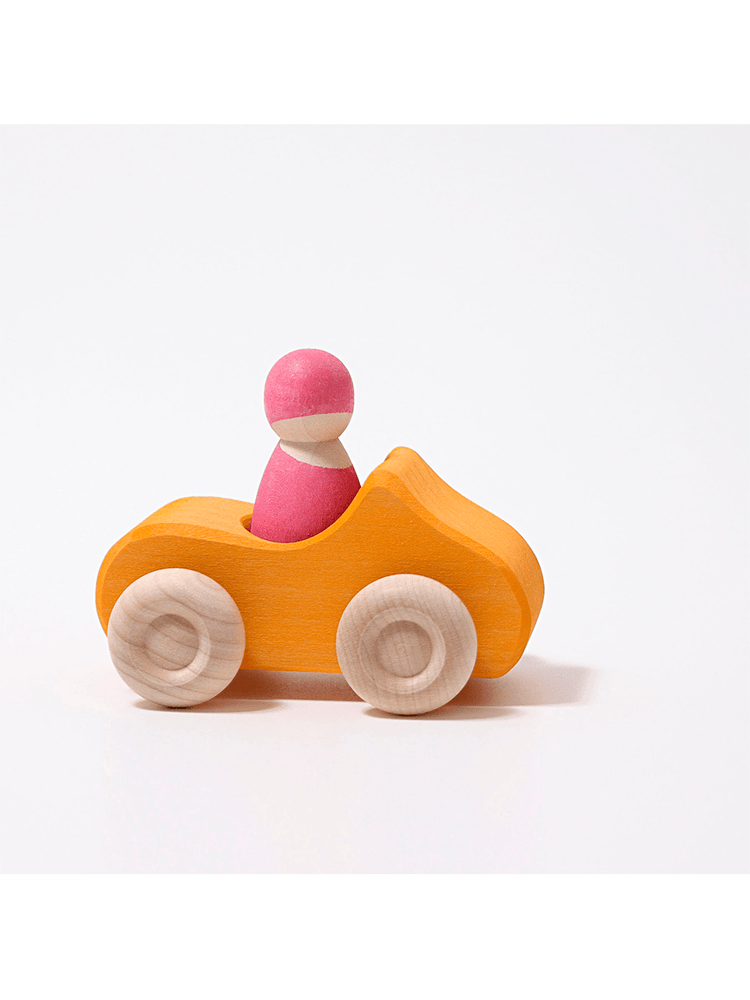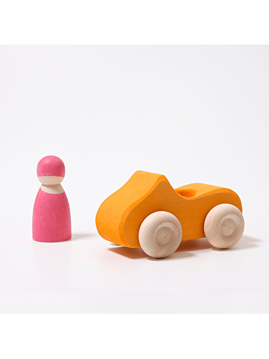 Grimm’s enkle og solide legetøj dufter af skov og natur. Den gule lindetræsbil med chauffør kan køre indendørs og i naturen og inspirere til mange timers kreativ leg for store og små. Figuren er en del af vores regnbue venner.