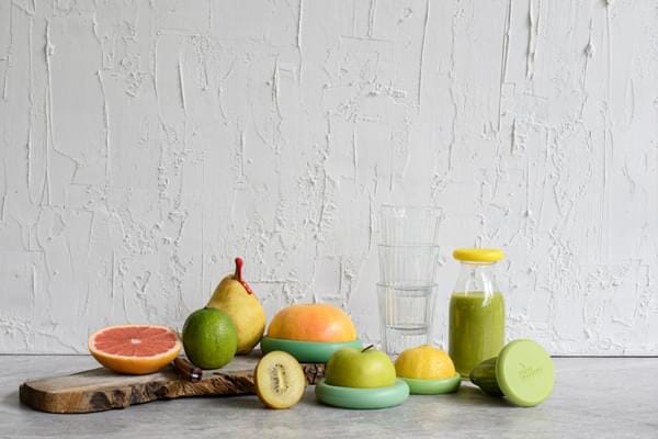 Sæt med fem genanvendelige Food Savers i silikone fra Food Huggers, Sage Green